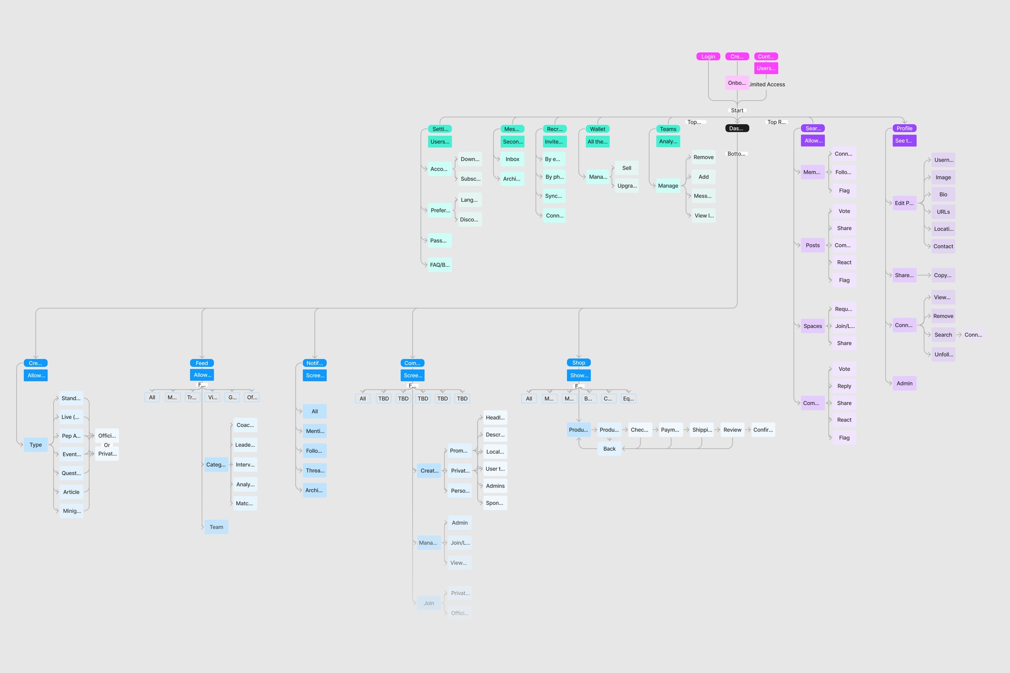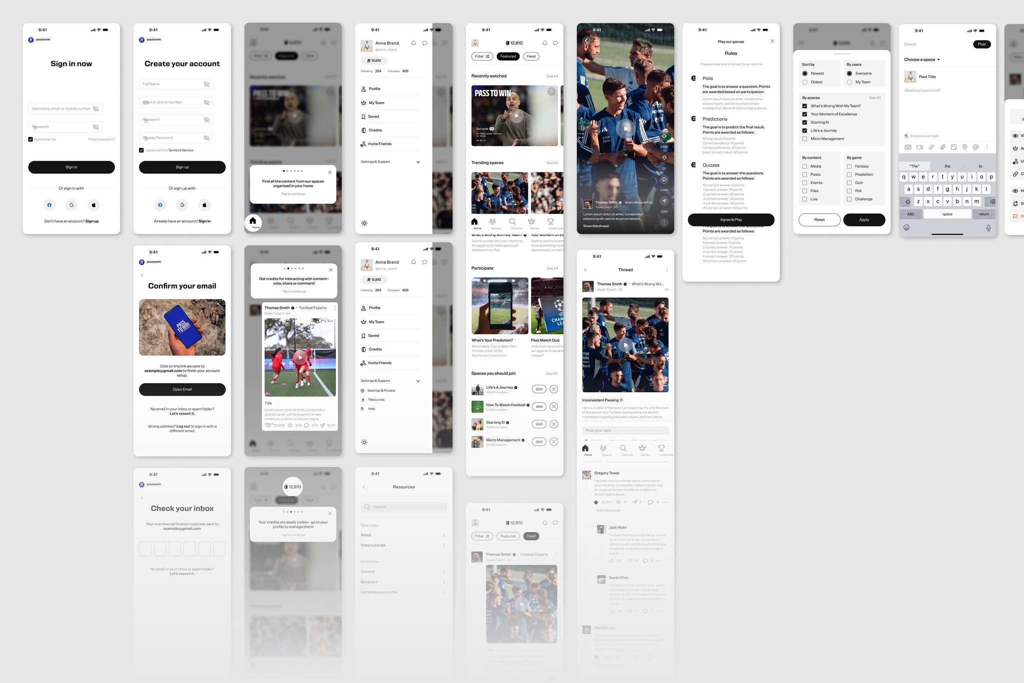 The work began in the concept phase, where the vision for Pass to Win needed structure and clarity. We started with in‑depth market research, analysing existing community‑based platforms to identify what made them engaging and where there was space for innovation. This helped shape the foundation of the platform’s concept and informed early strategic decisions.
